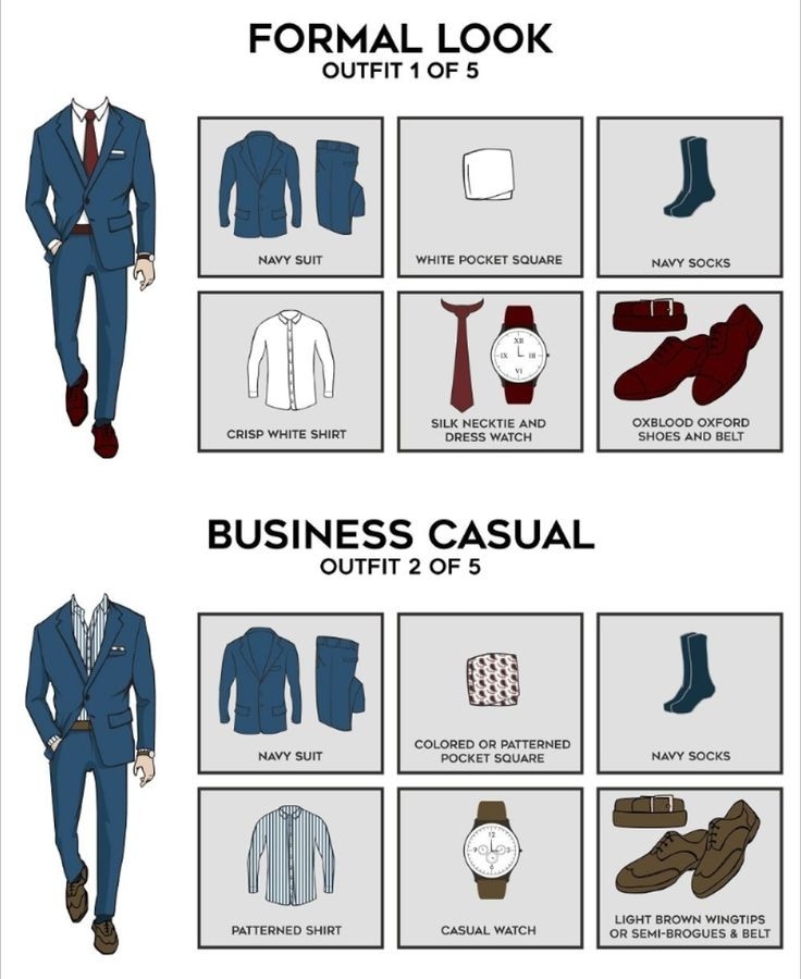 Navy Blue – This is a classic color that exudes sophistication, confidence, and authority. It’s perfect for job interviews, board meetings or formal dinners.